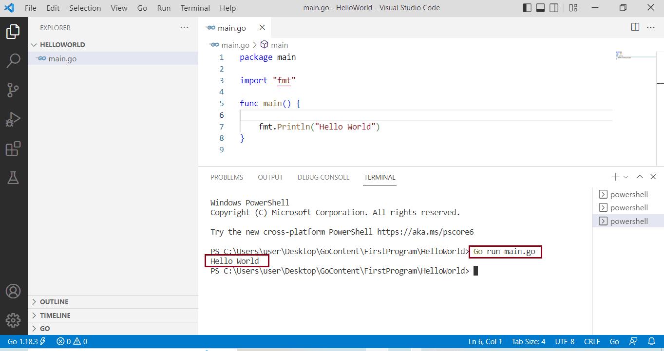 In this article, let us write the first program Hello World in Go language using Visual Studio Code editor.