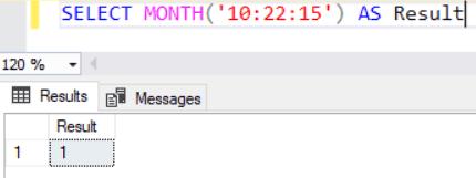 If the specified date contains only the time part, then the MONTH() function returns 1.
