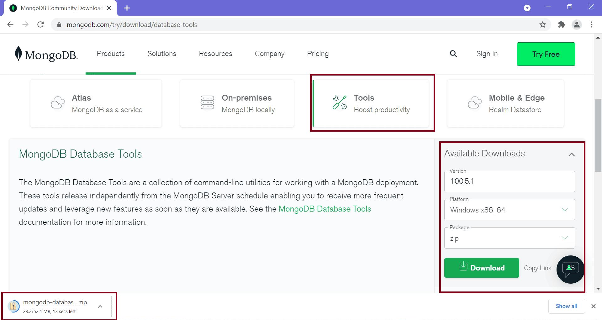 To install the database tools, visit Database tools and download the zip file for your platform.