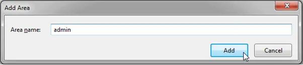 Enter the name of an area in the Add Area dialogue box and click on the Add button.