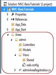 As you can see, each area includes the AreaRegistration class. The following is adminAreaRegistration class created with admin area.