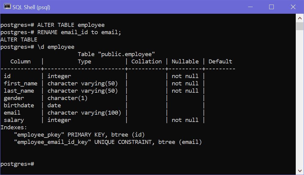ALTER TABLE employee