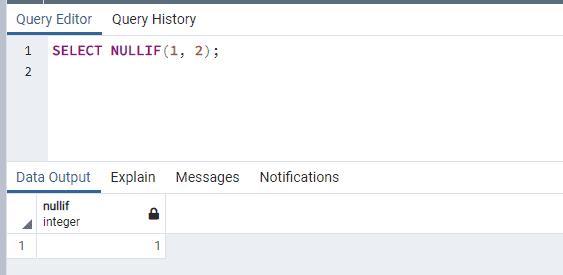 SELECT NULLIF(1, 2);