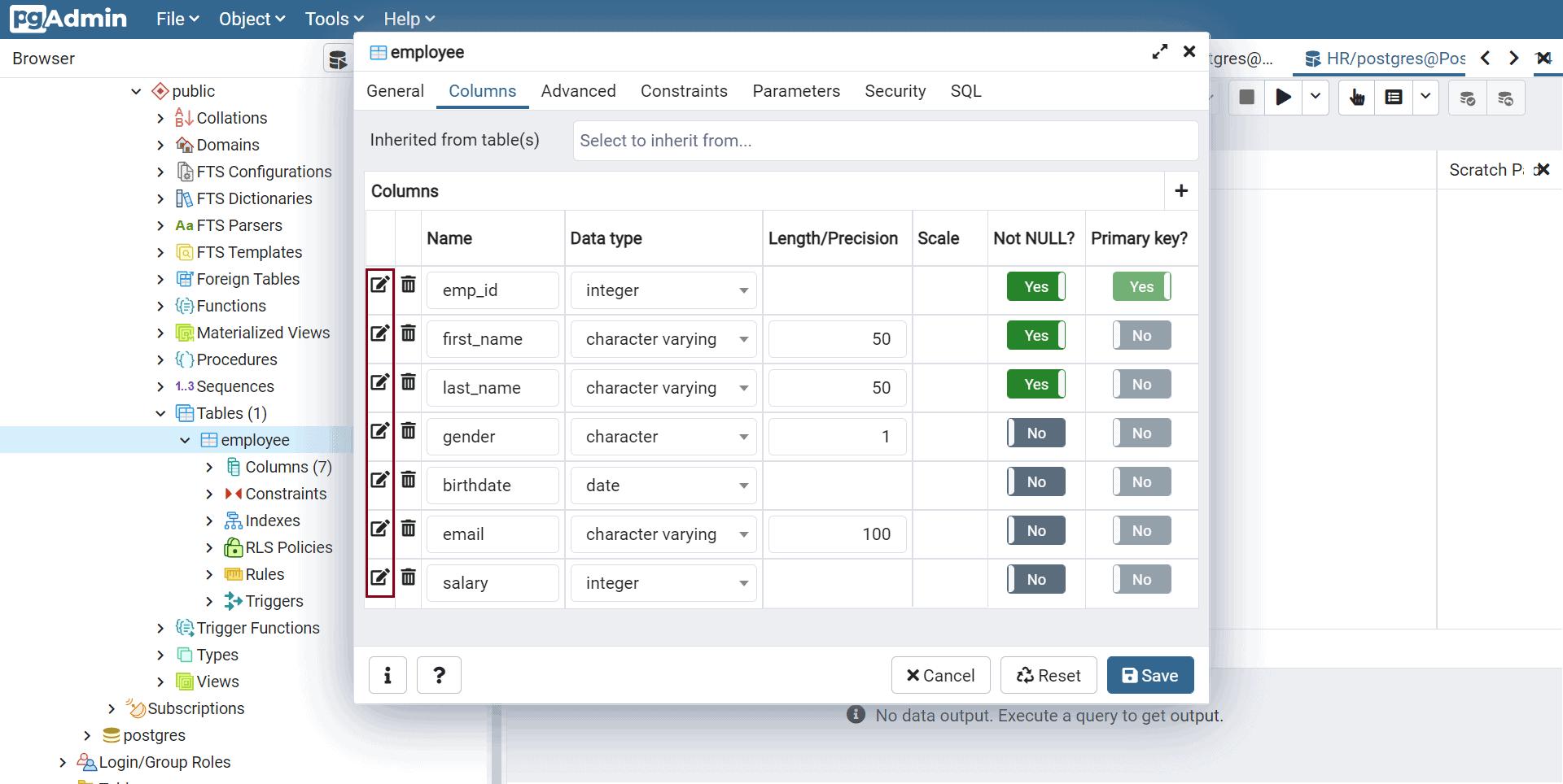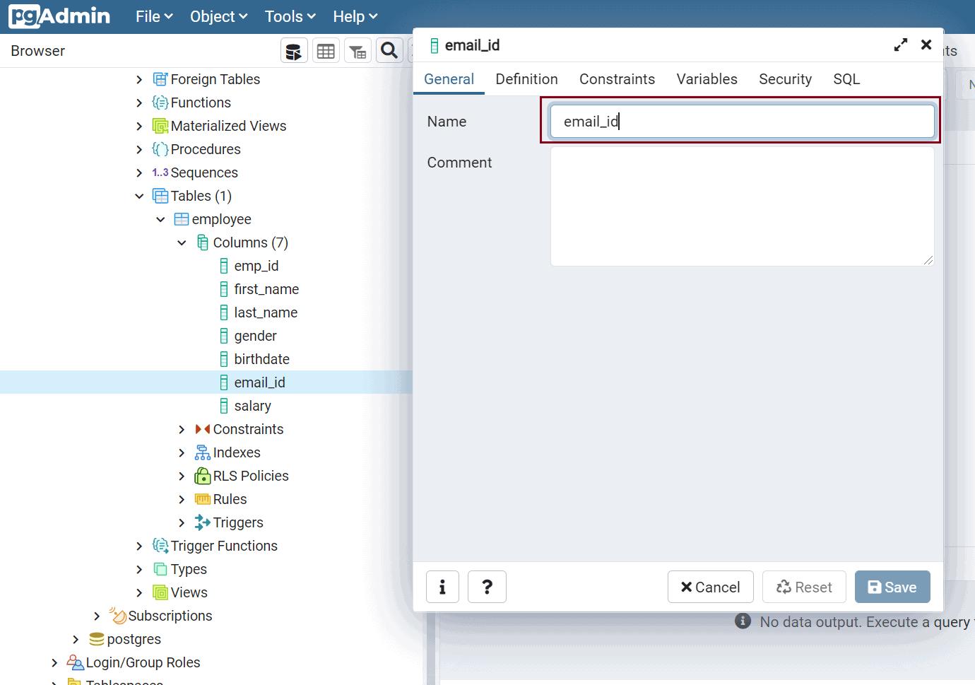 Rename Column using pgAdmin