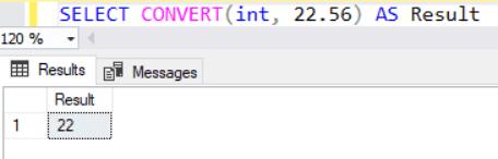 SELECT CONVERT(int, 22.56) AS Result;