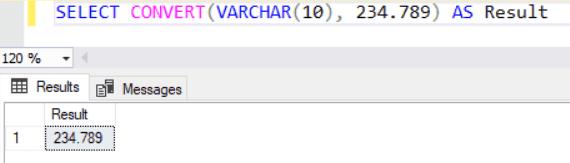 SELECT CONVERT (VARCHAR (10), 234.789)