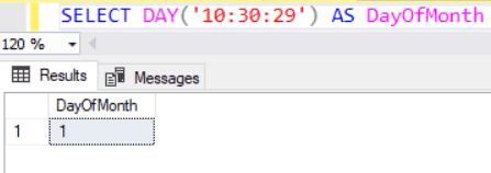 SELECT DAY('10:30:29') AS DayOfMonth
