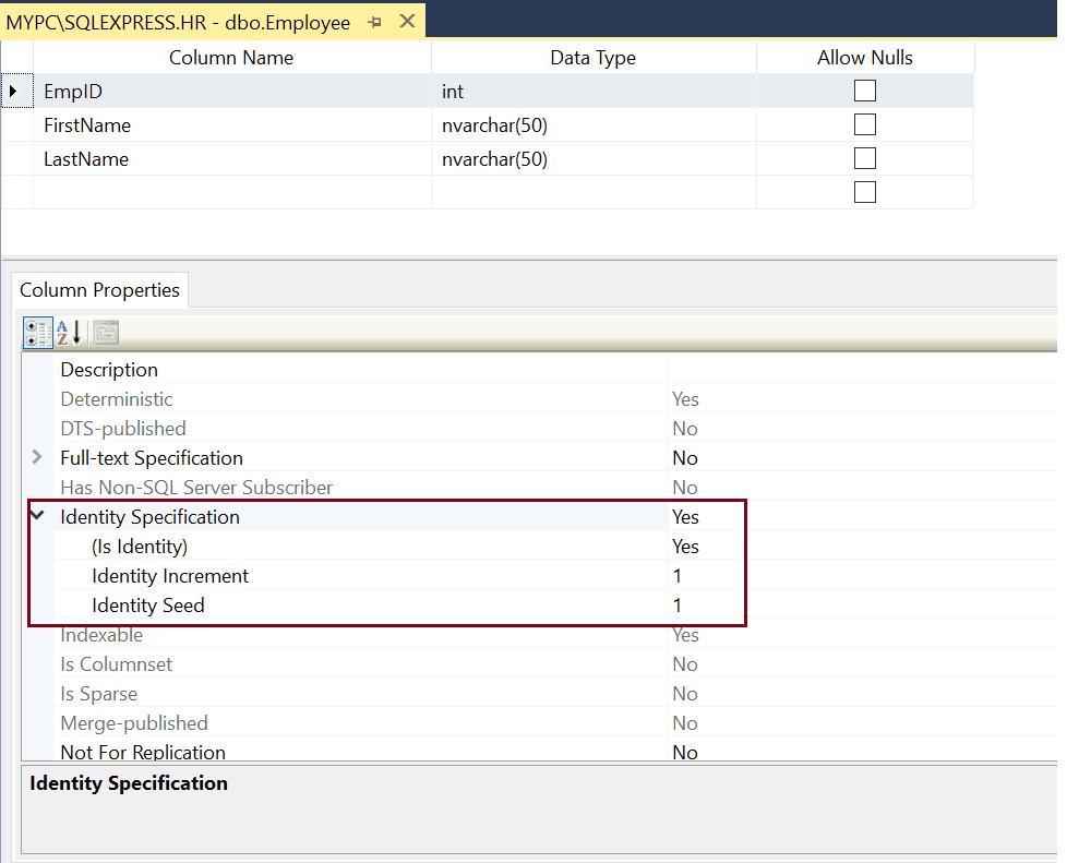 [EmpID] [int] IDENTITY(1,1) NOT NULL,