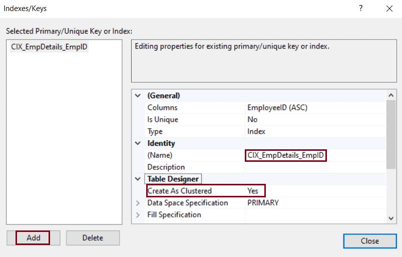 CREATE CLUSTERED INDEX CIX_EmpDetails_EmpId