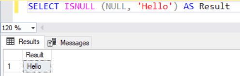 SELECT ISNULL(NULL, 'Hello') AS Result