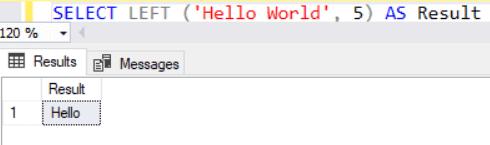 SELECT LEFT('Hello world', 5);