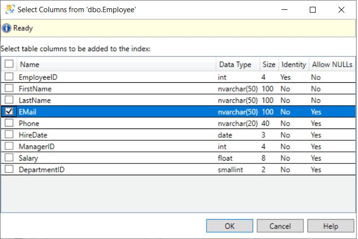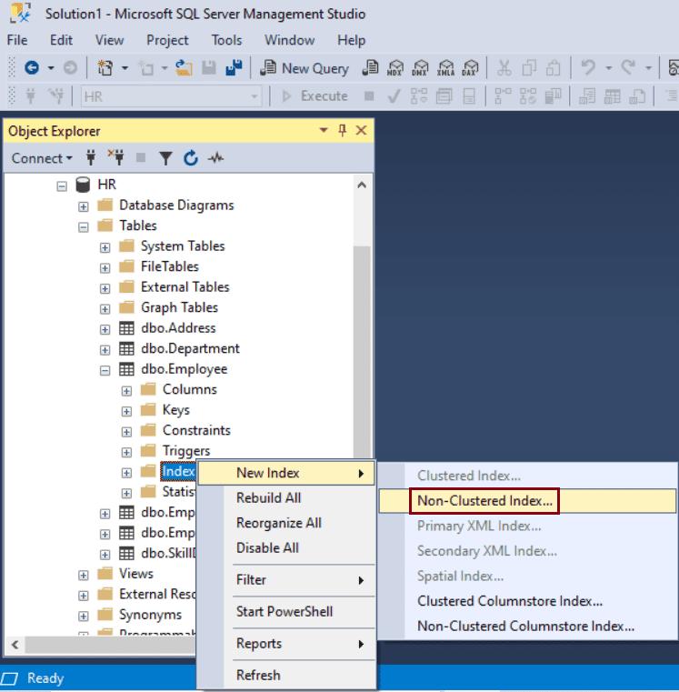 ON dbo.Employee(Email);Create a Nonclustered Index using SSMS