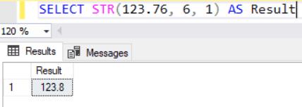 SELECT STR(123.76, 6, 1) AS Result1,