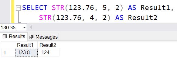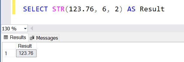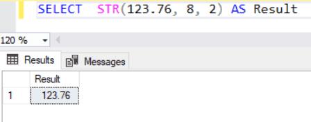 SELECT STR(123.76, 5, 2) AS Result1,