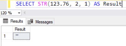 SELECT STR(123.76, 2, 1) AS Result